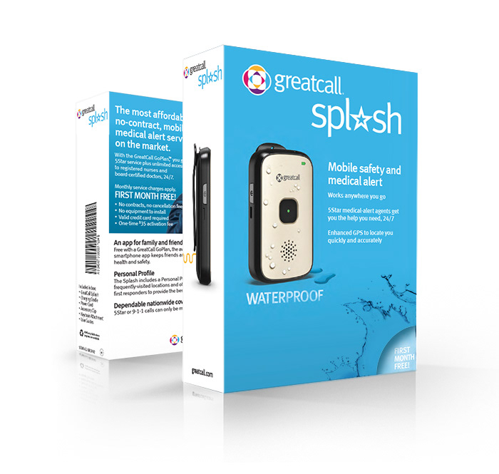 B2C packaging design for the GreatCall Splash device.
